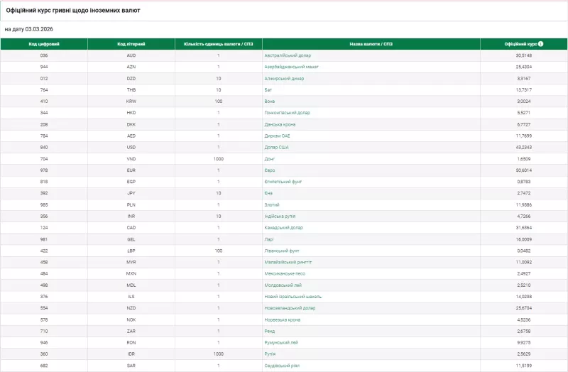 Національний банк України встановив нові офіційні курси валют на вівторок, 2 березня 2026 року. Долар США подорожчав, євро — здешевшав, тоді як польський злотий продемонстрував незначне зміцнення щодо гривні.